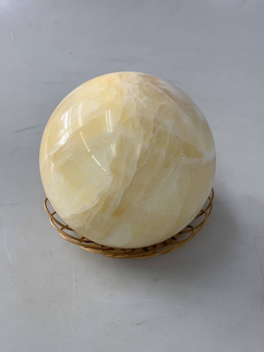 - N2408 アラゴナイト 丸玉 置物 インテリア ボール 玉 10.5cm