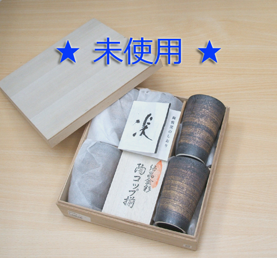 未使用品◎有田焼 陶悦窯 結晶金彩 陶コップ揃 5客 5つセット グラス 口径7×高さ11cm 酒器 フリーカップ 石丸陶芸 札幌市 平岸店