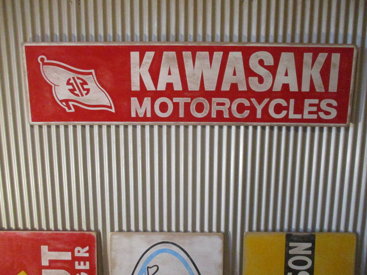 - インテリア木製看板 KAWASAKI MOTORCYCLE検)アドバタイジング企業販促ガレージカスタムHARLEYHONDAYAMAHAUSA60s70s80s