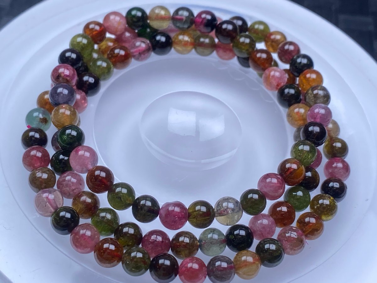 > 即決 0619k920 天然石★【30Aミックスカラートルマリン】★3重巻き 5.5mm 52cm(新品)