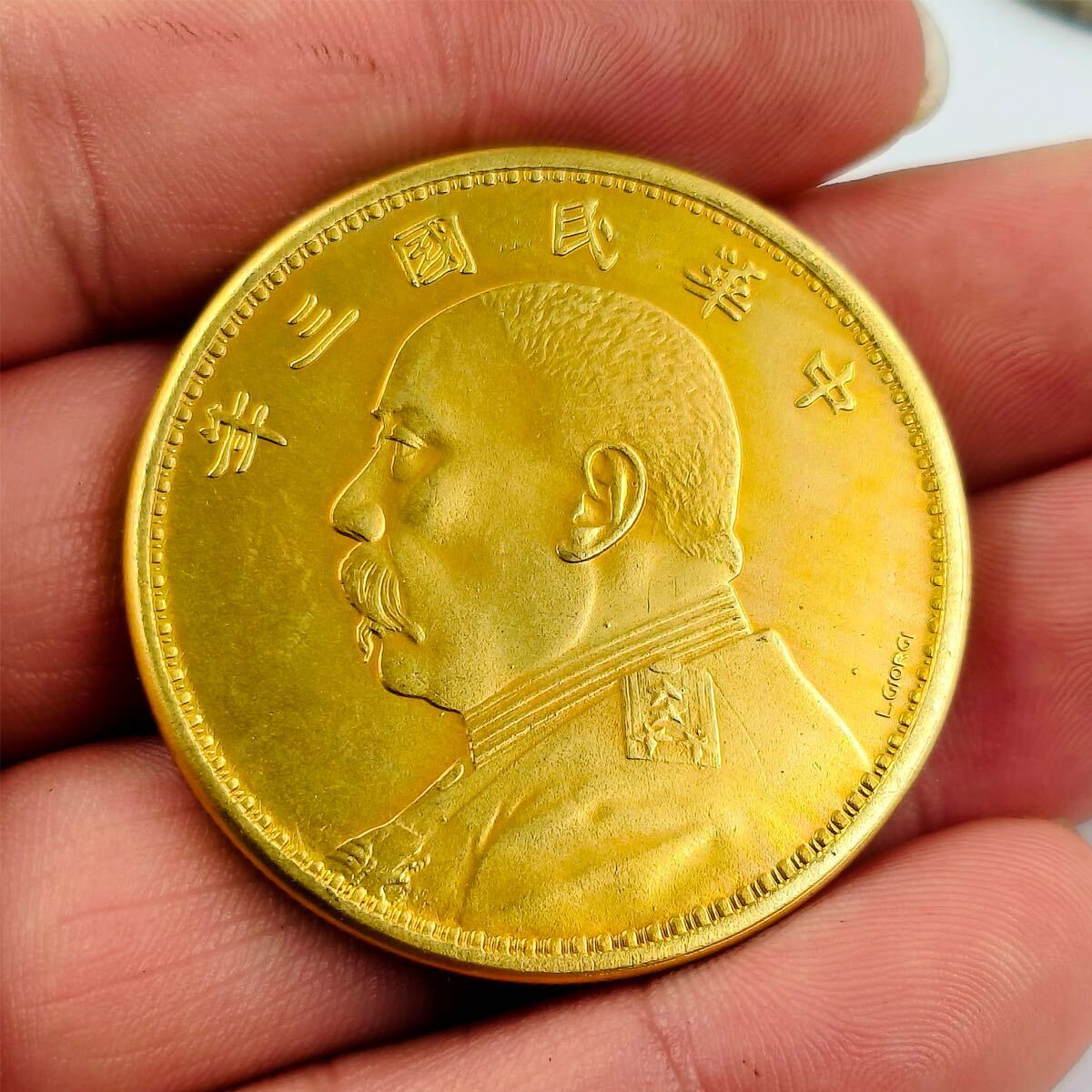 - 絶美品 袁世凱 人物記念硬貨 中華民国三年 一円金貨 大型金貨 貿易銀 壹圓 中国 外国硬貨 古銭 サインあり コレクション 収蔵品