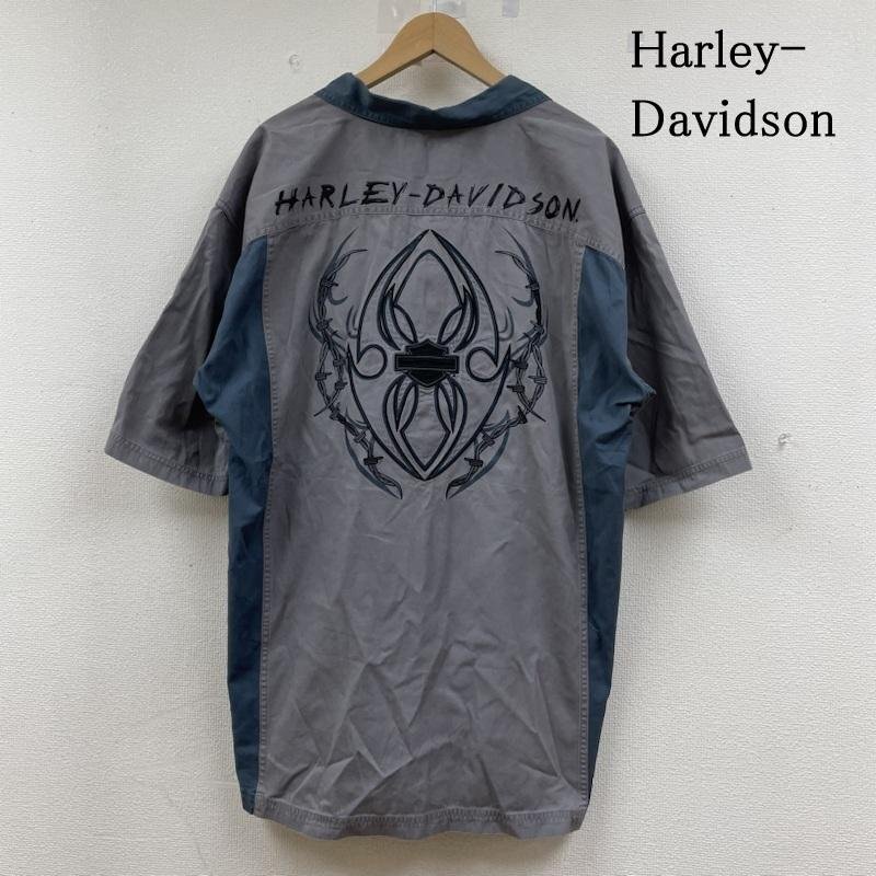 > ハーレーダビッドソン トライバル 隠しボタンダウン オープンカラー 半袖 ワーク ボックスシャツ ロゴ 刺繍 サイズ3XL -