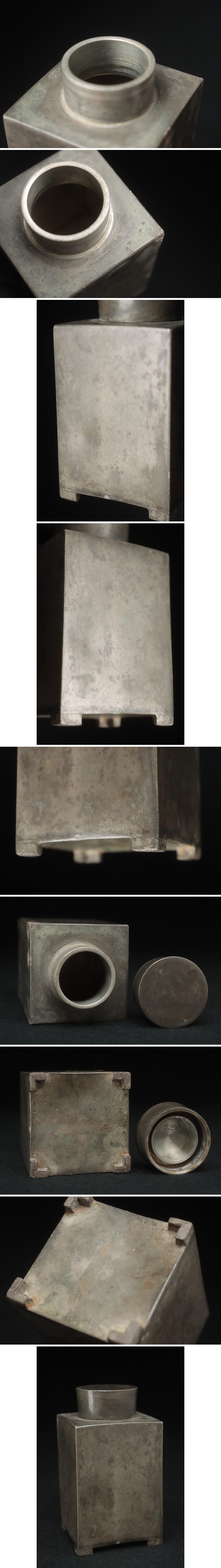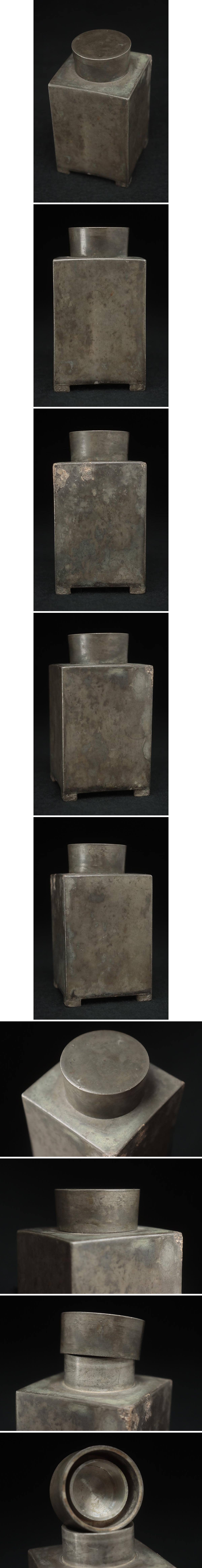 - FC970 時代 唐物 古錫 四方茶心壺・古錫茶壷 高9.4cm・茶入・錫茶叶罐・茶葉入 茶器 茶器 煎茶道具 中国古玩 古美術