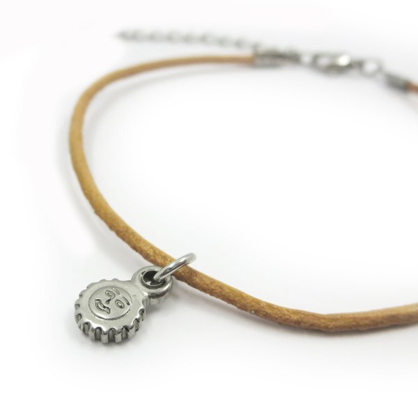 - レザー 革紐 アンクレットスマイルチャーム付き ステンレス金具 25cm(21cm+4cmアジャスター)