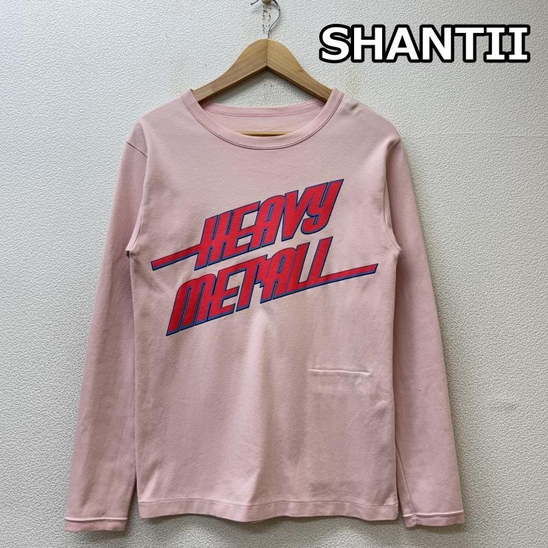 > シャンティー 日本製 HEAVY METAL ロゴ プリント 内ポケ付 クルーネック 長袖 Tシャツ ロンT 桃色 ピンク S