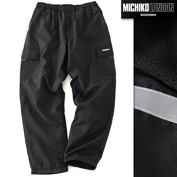 - 新品 ミチコロンドン 裏暖 フリース ウォーム イージー カーゴ パンツ LL 黒 【ML85-0020_10_LL】 秋冬 メンズ リフレクター 高密度 防寒