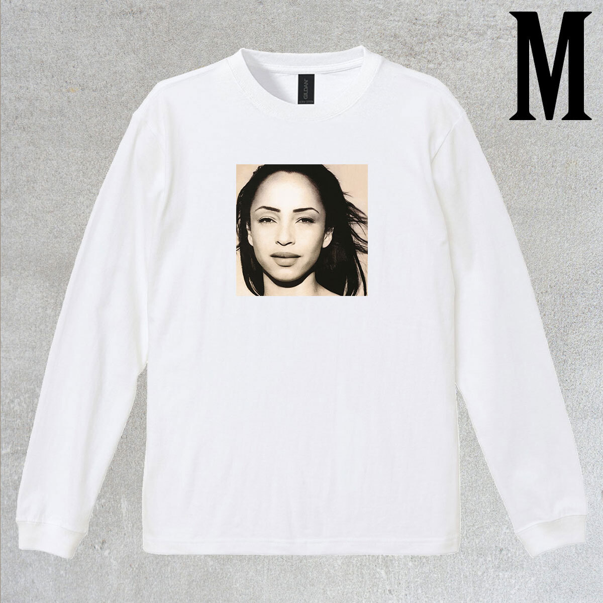 > シャーデー SADE 柄 フォトプリント リブ付き 長袖 Tシャツ ロンT キレイめ カジュアル 6.0oz コットン100% ユニセックス M