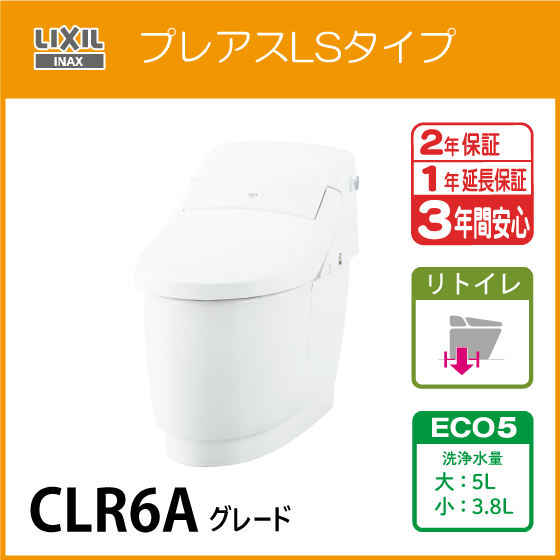 - 一体型便器 プレアスLSタイプリトイレ ECO5 CLR6Aグレード YBC-CL10HU DT-CL116AHU リクシル イナックス LIXIL INAX