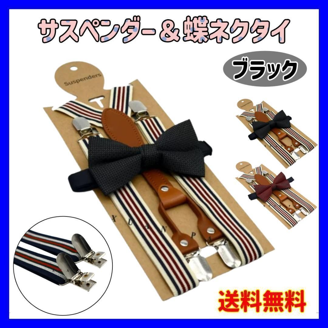 - 【黒】サスペンダー 蝶ネクタイ 2点セット 調節可能 結婚式 パーティー 紳士