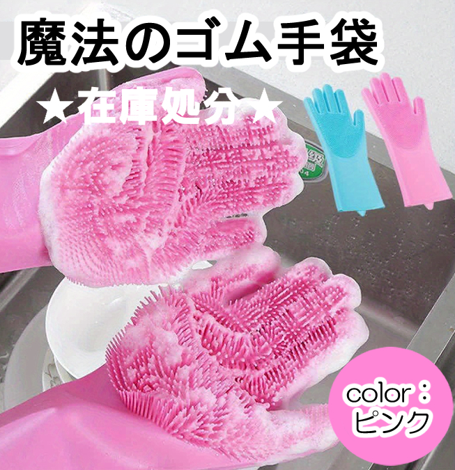 - ピンク シリコン 手袋 キッチン 掃除 ペットブラシ 洗車 多機能 ブラシ 食器 クリーニング 防水