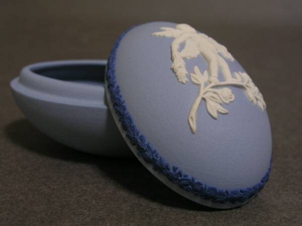 - ◎ウェッジウッド 3色ジャスパー 可愛い小型卵形蓋物「天使」◎希少