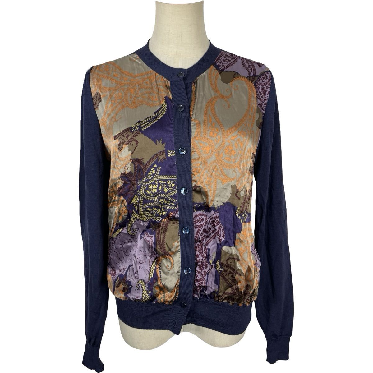 - ETRO エトロ レディース ネイビー 柄切り替え ニット カーディガン ジャケット 46