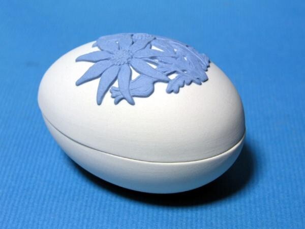- ◎未使用 ウェッジウッド 青/白 逆転ジャスパー 可愛い小型卵形蓋物 「花」◎希少