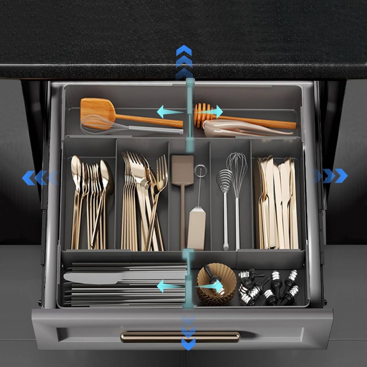 - ママ倉 カトラリーケース (伸縮 調節可能) カトラリートレー 4面伸縮 引き出し 伸縮仕切りX2 お手入れ簡単 キッチン収納 引き出し