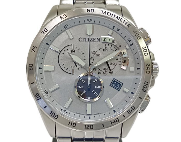 - CITIZEN シチズン メンズ 腕時計 E610-S074321 エコドライブ ソーラー クロノグラフ デイト SS シルバー文字盤 稼動品