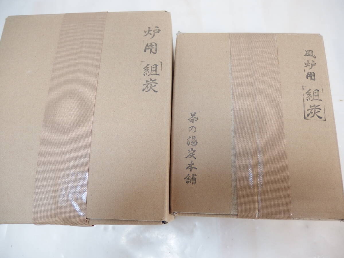 - 8)茶の湯炭本舗 炉・風炉用 組炭 枝炭入 各1点 合計約2㎏ 未使用品