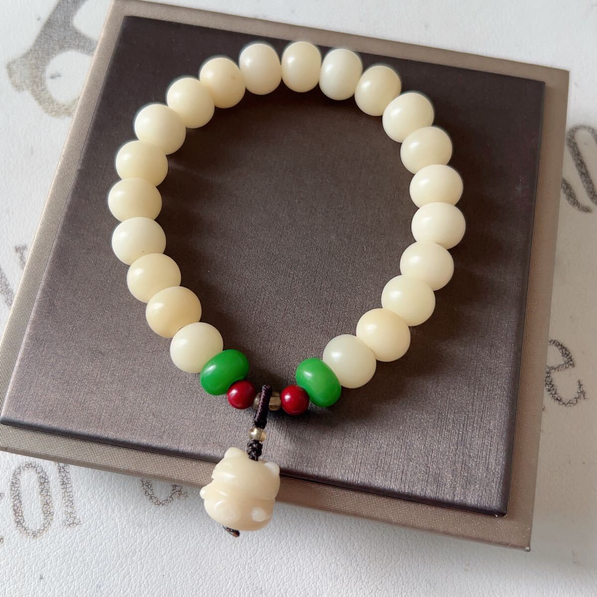 - ◇菩提樹の根◇白玉菩提+シナバー◇ブレスレット◇数珠◇念珠◇巾着袋つき◇プレゼントにも010B10201