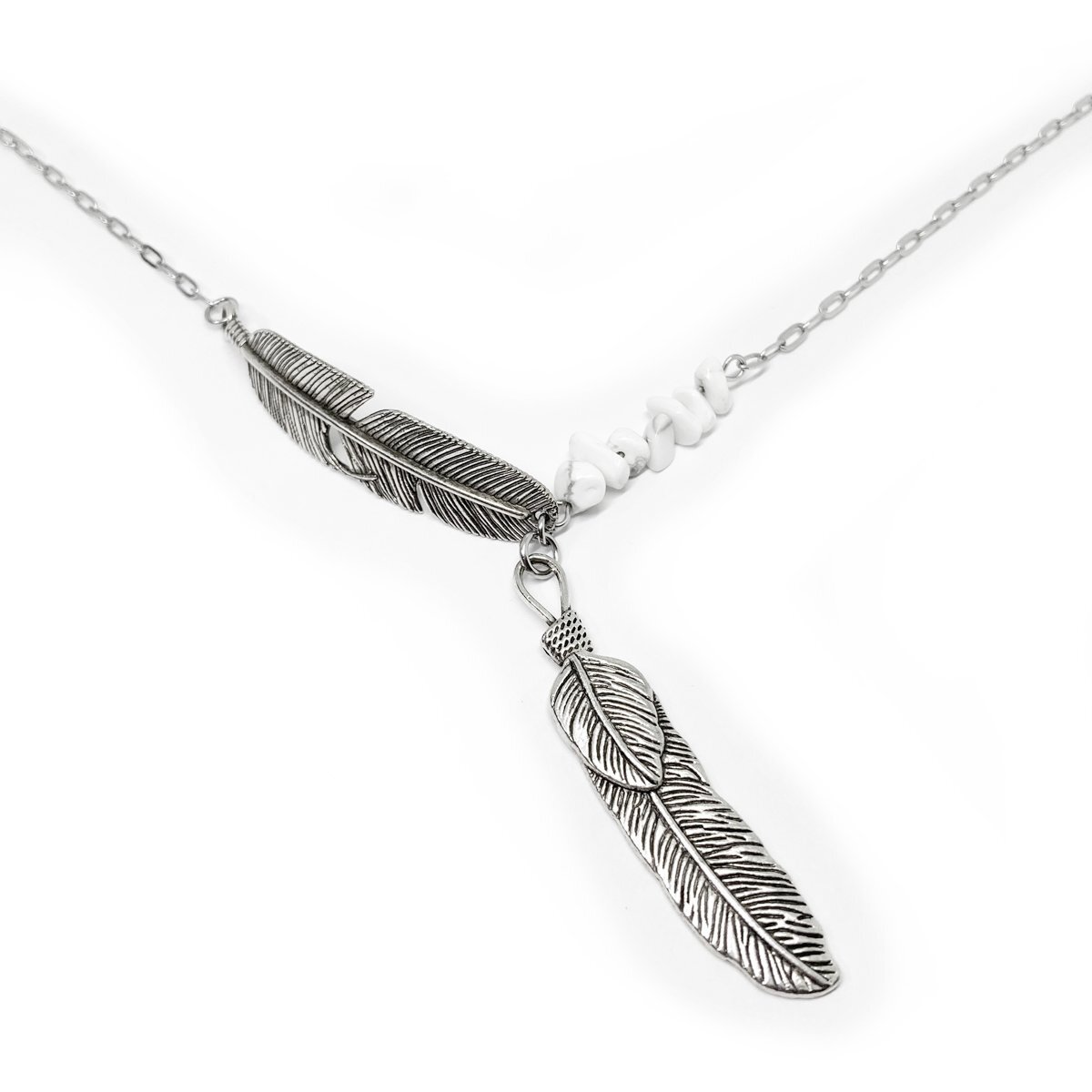 - 男女兼用 フェザーチャーム ロングネックレス ホワイトハウライト 約75cm NGF03