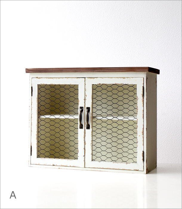 > ウォールキャビネット 木製 ウッド おしゃれ 壁掛け レトロ風ウッドウォールキャビネット 【Aカラー】 送料無料(一部地域除く) hbr1638a