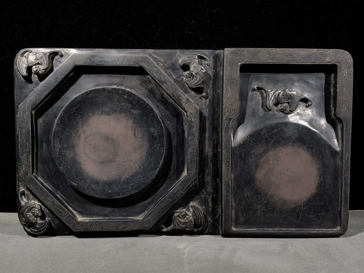 - ◆御泓軒◆『清時代 焦循銘 端石彫 五福臨門紋双池硯 端渓硯』極細工・古賞物・中国古玩・中国古美術