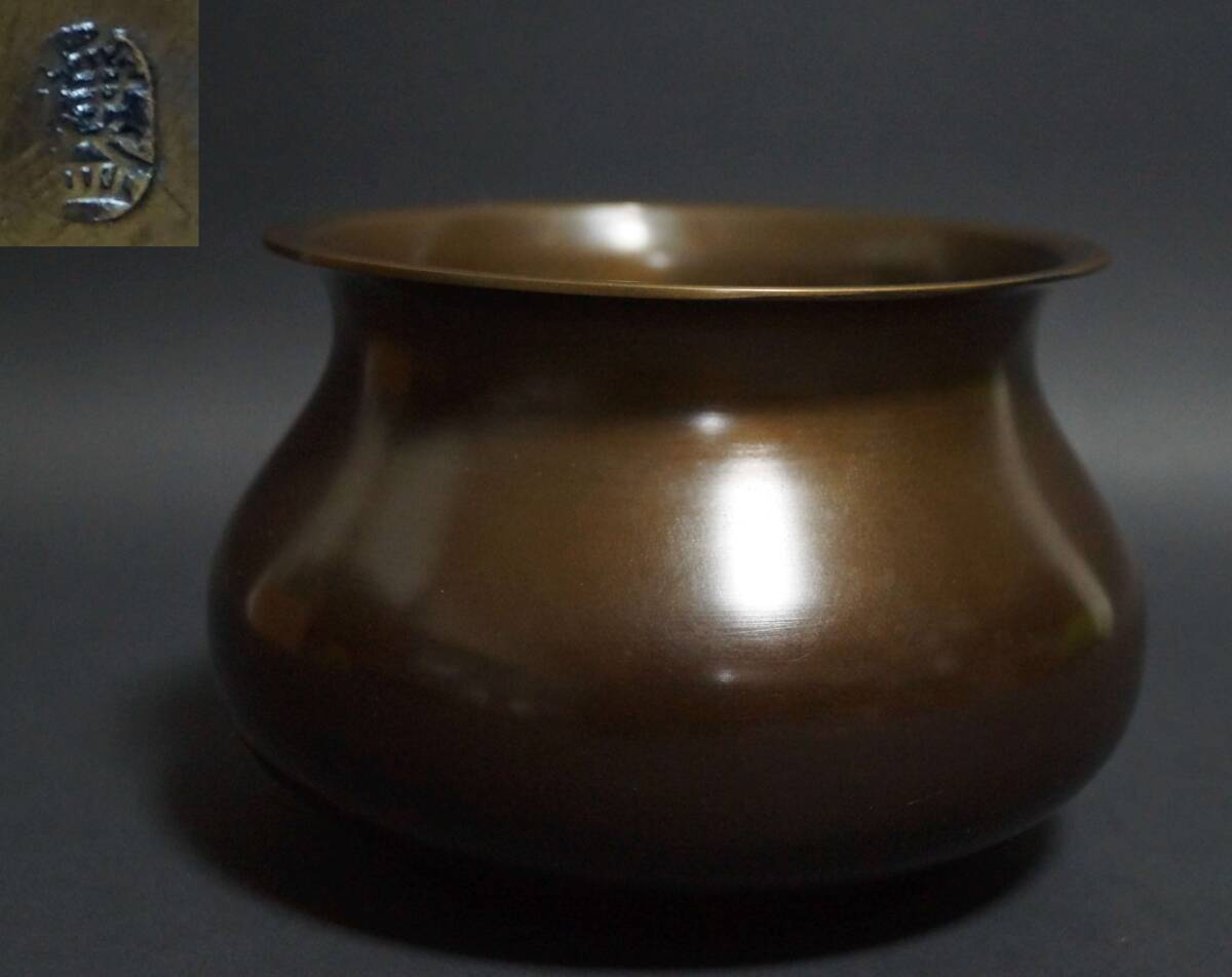 - 【閑】中川浄益 銘 銅製 エフゴ建水 茶道具★時代物★7D1002