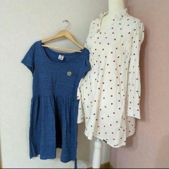 - X-girl ワンピース 2枚セット サイズ1 シャツワンピ 半袖ワンピ ミニ丈 レディースカットソーワンピ 古着 レア