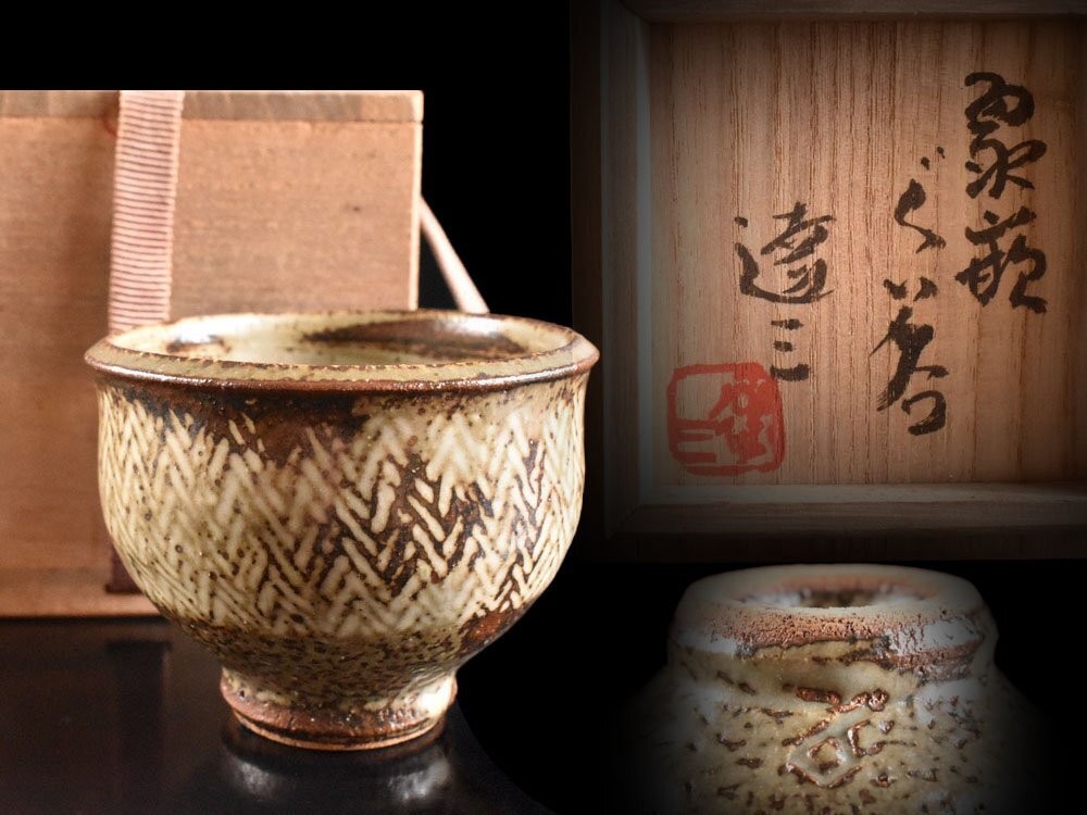 - 【雲】某有名資産家買取品 人間国宝 島岡達三 益子焼 象嵌 縄文 ぐい 共箱 古美術品(酒器 茶碗 茶道具)Y6883 CTDokjy
