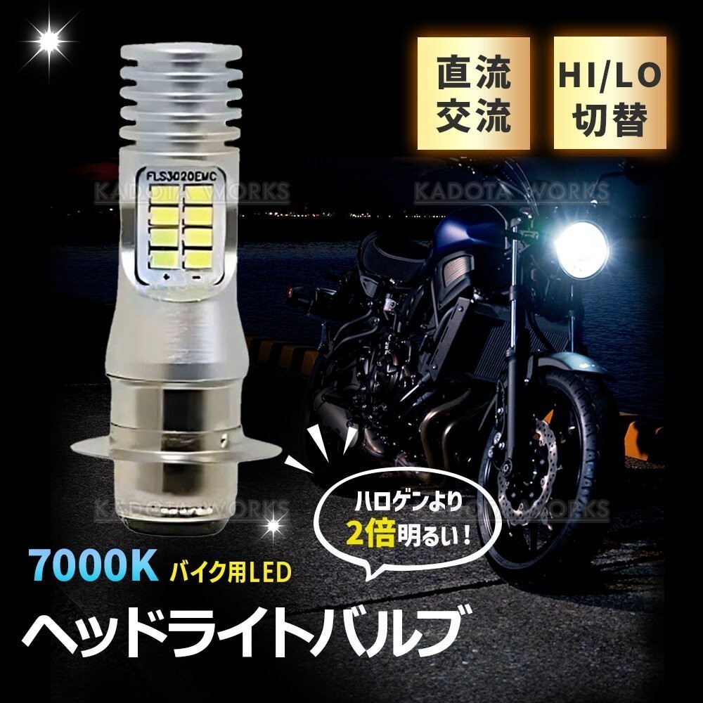 - LED ヘッドライト バルブ ホワイト PH7 T19L Hi/Lo P15D バイク用 直流 交流 12V 24V 7000K 原付 無極性 ジョグ カブ ジャイロ レッツ