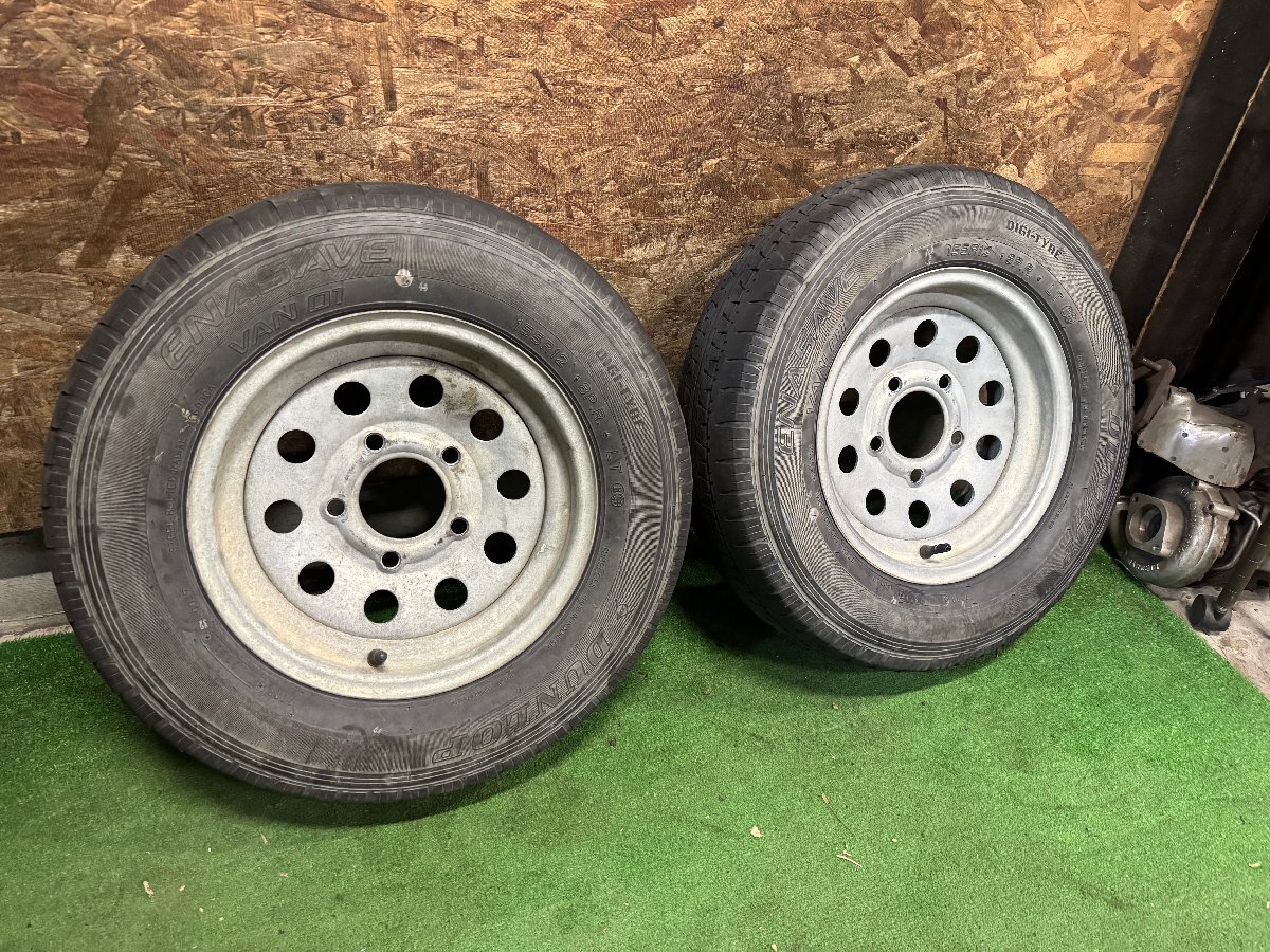 - 12インチ PCD114.3 5H 155R12 8P.R. LT DUNLOP ENASAVE VAN01 夏タイヤ タイヤホイール 2本セット H10