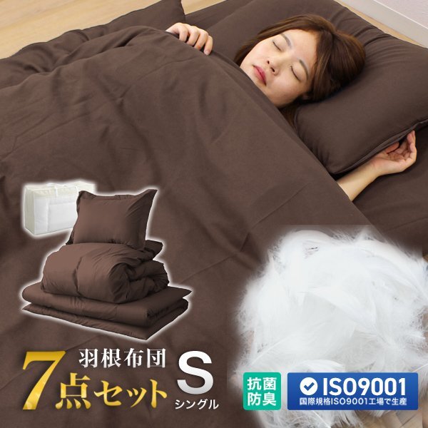 - 羽根布団 7点セット シングル 洗える 抗菌 防臭 オールシーズン ふとん 寝具 組布団 掛布団 敷布団 枕 厚手 収納ケース 新生活 ブラウン