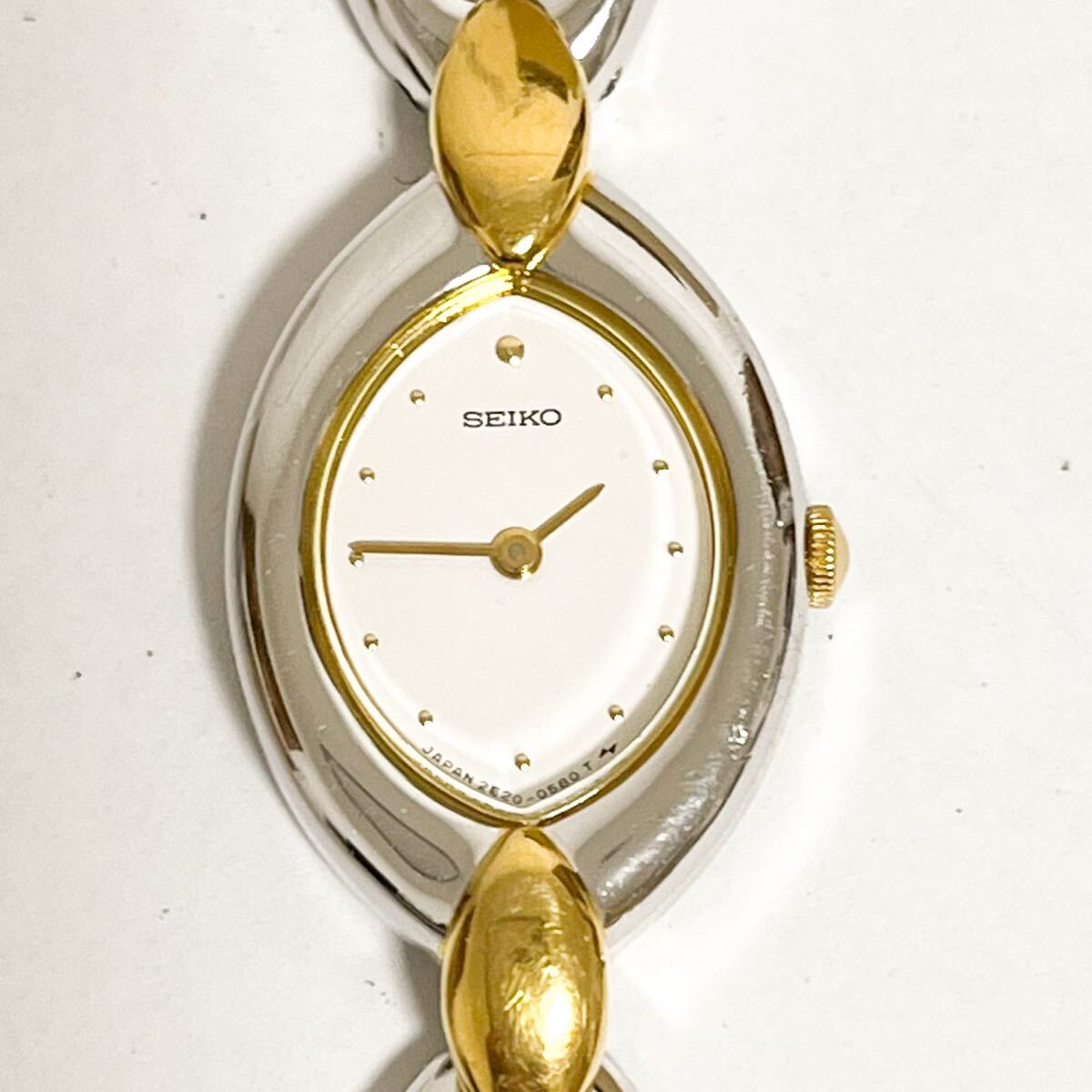 - 和851★ SEIKO セイコー クォーツ 腕時計 ウォッチ 2針 2E20-5450 532300 ホワイト シルバー ゴールド レディース