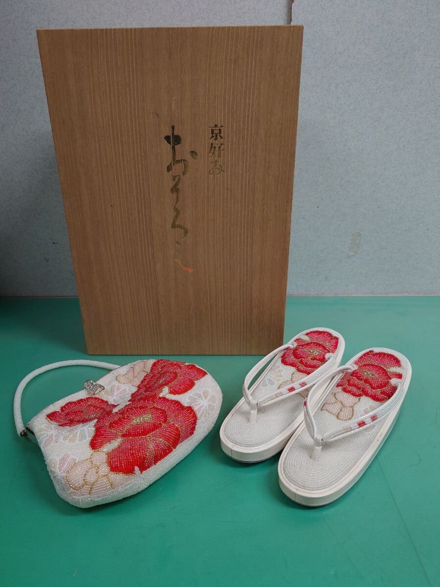 > ● 京好み おそろえ 桐箱付 総ビーズ レトロ ヴィンテージ ビーズ細工 花模様 草履 素敵な 花柄 和装 洋装 (バッグ ジャンク) 中古 ③
