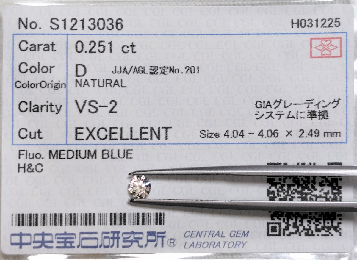 - 【12/12(金)】天然ダイヤモンド ルース 0.251ct D VS2 鑑別 CGL│A10211gl 【EX up】 ダイヤ diamond