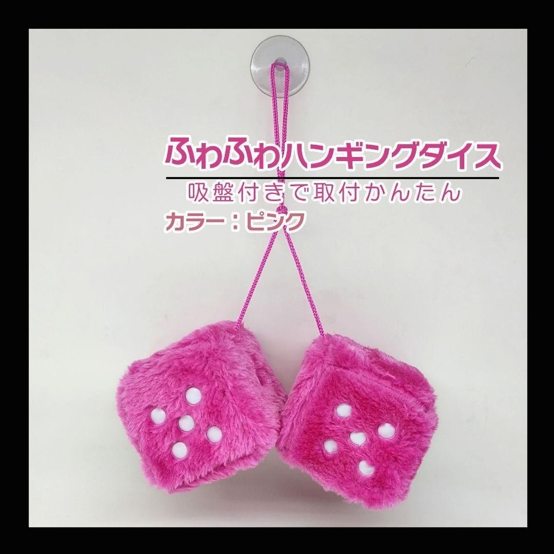 - ピンク サイコロ ハンギング ダイス ファジーダイス カーアクセサリー 飾り ハンギングダイス さいころ ふわふわ ファー