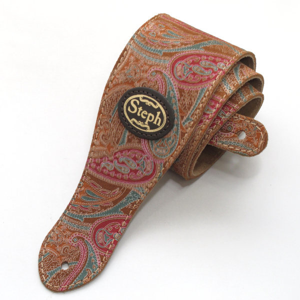 > 新品 Steph PAY-2205 コニャック スエード/ペイズリー ギターストラップ レザーストラップ