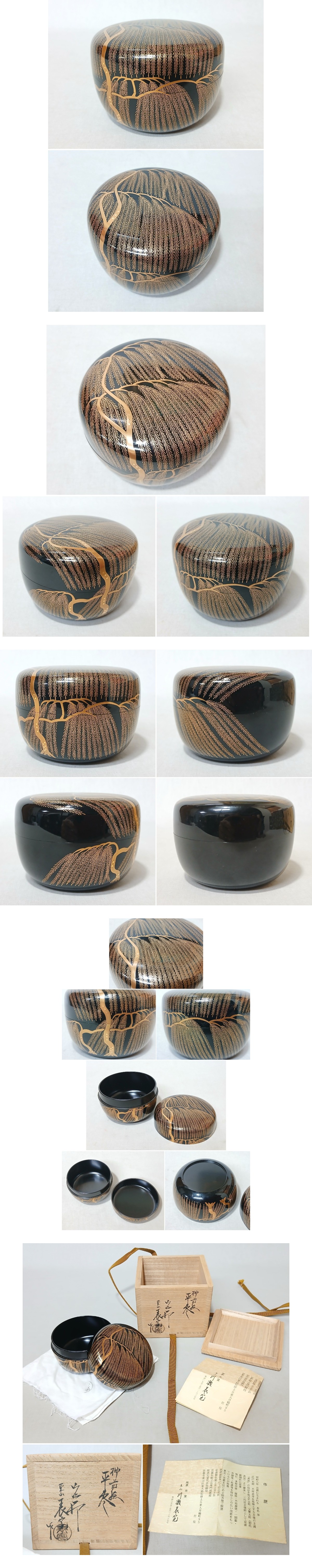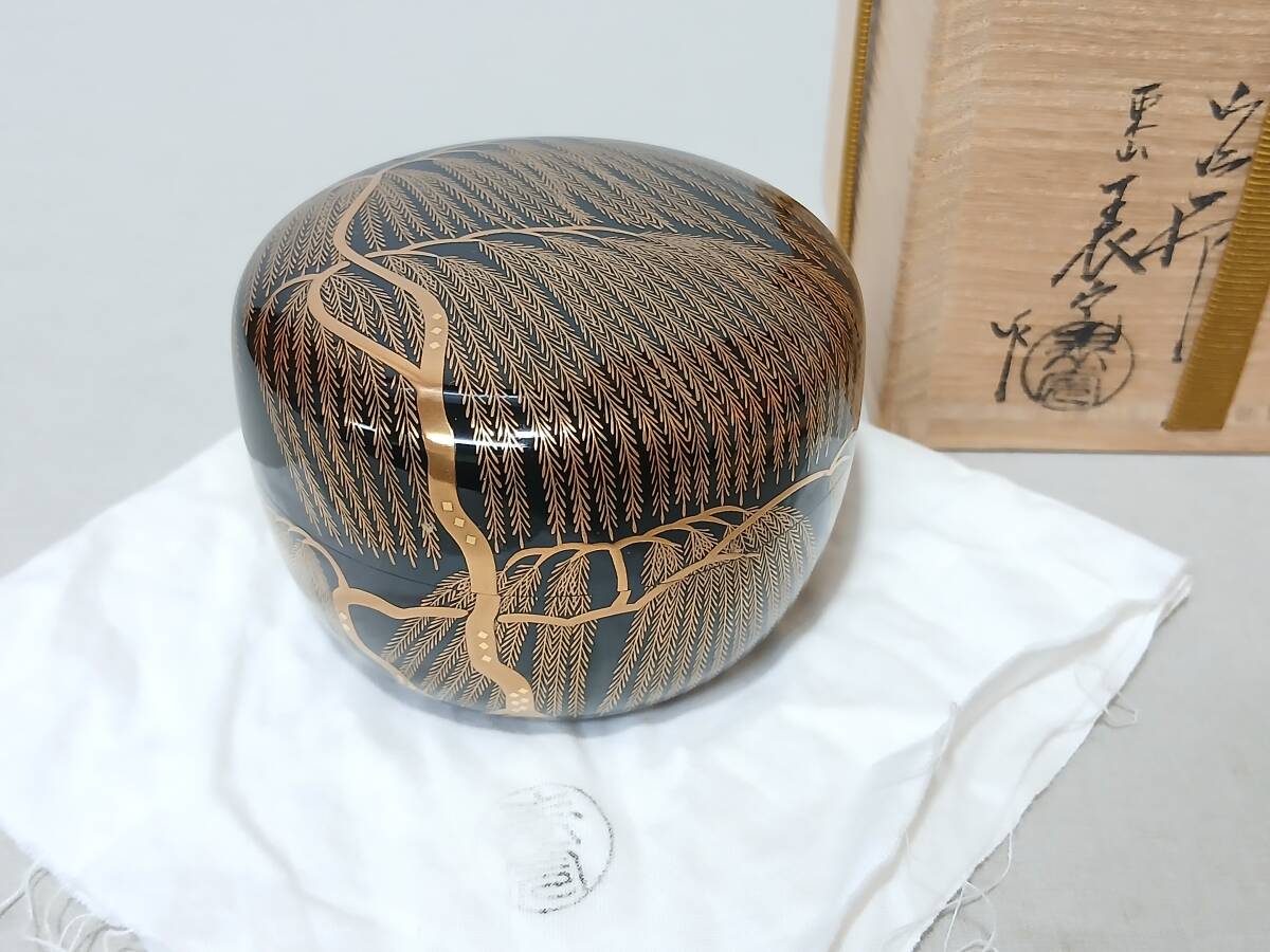 - ★【茶道具整理品】 東山・川瀬表完 作 柳蒔絵 平棗 四方桟桐共箱・共布 漆芸歴書付 薄茶器 棗 截金 / 表千家 裏千家 茶道 ◆