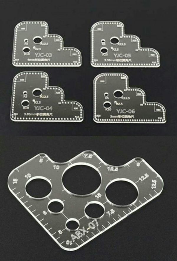 > 送料無料 新品 R定規 セット レザークラフト アクリル 切り出し 縁取り 用 型紙 便利グッズ★Rが切り出せる定規 5点セット(3mm~4mm)