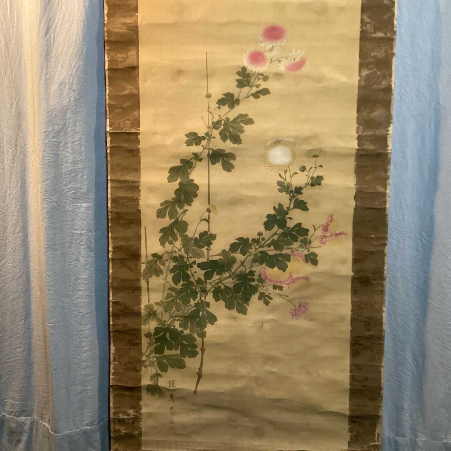 - [模写]円山応挙 菊図掛軸 絹本着色 箱書志貴小岳