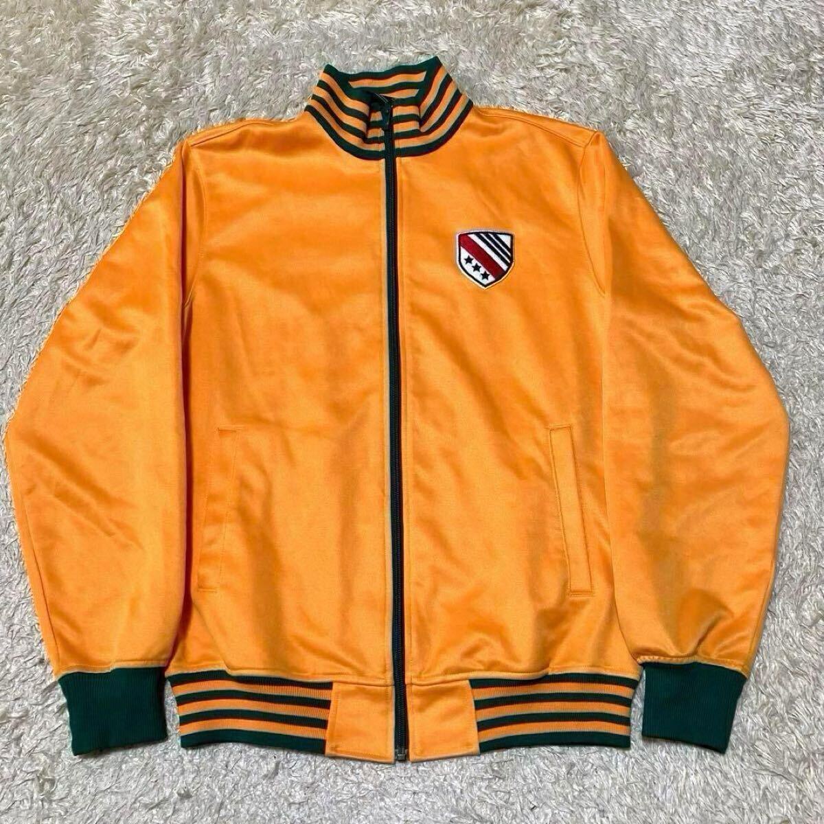 - 希少 配色抜群 アディダス adidas トラックジャケット ジャージ バイカラー ツートンカラー フルジップ リブ 刺繍ロゴ オレンジ M