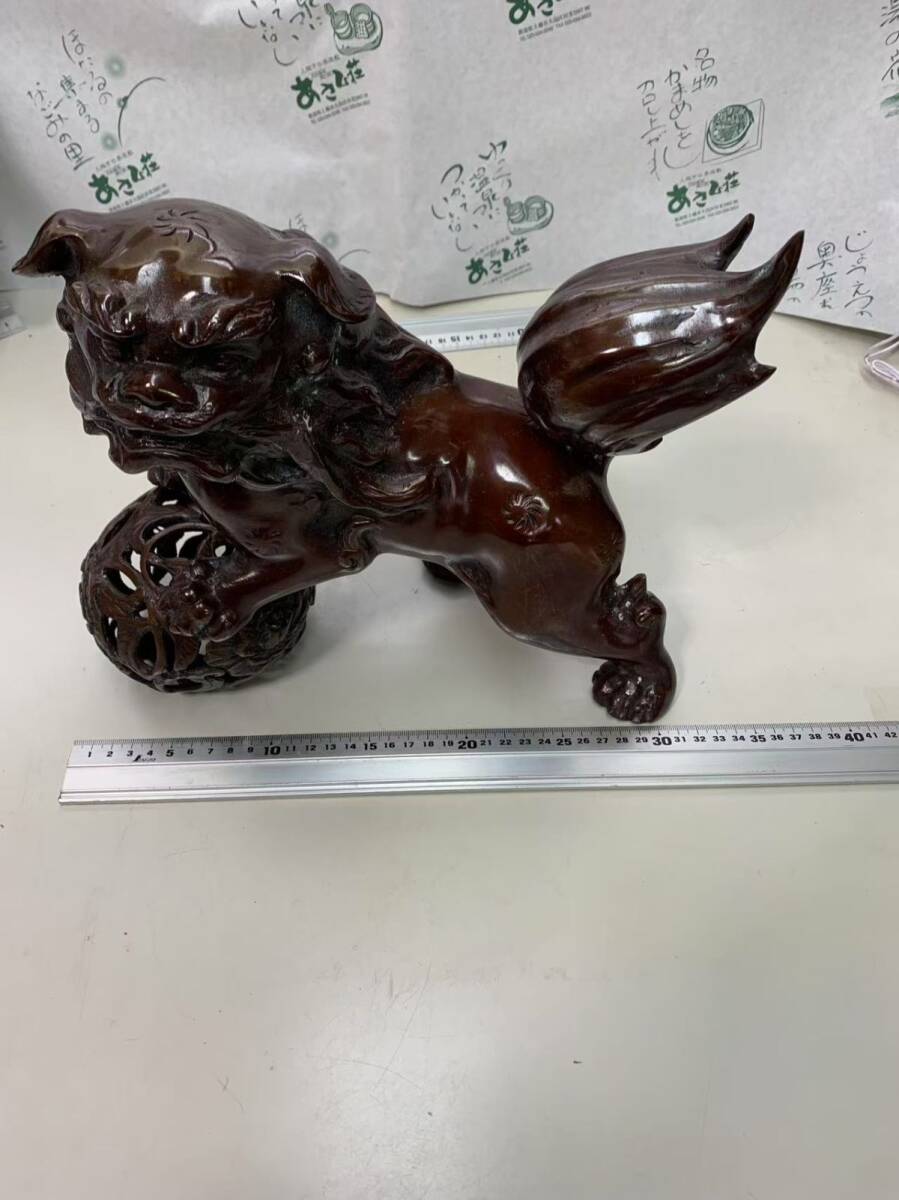 - S1-8-3→照雲 玉獅子 狛犬 魔除け 縁起物 置物 重量約5kg 高さ約25cm 銅 置物 銅製 民芸 工芸 金属 飾り