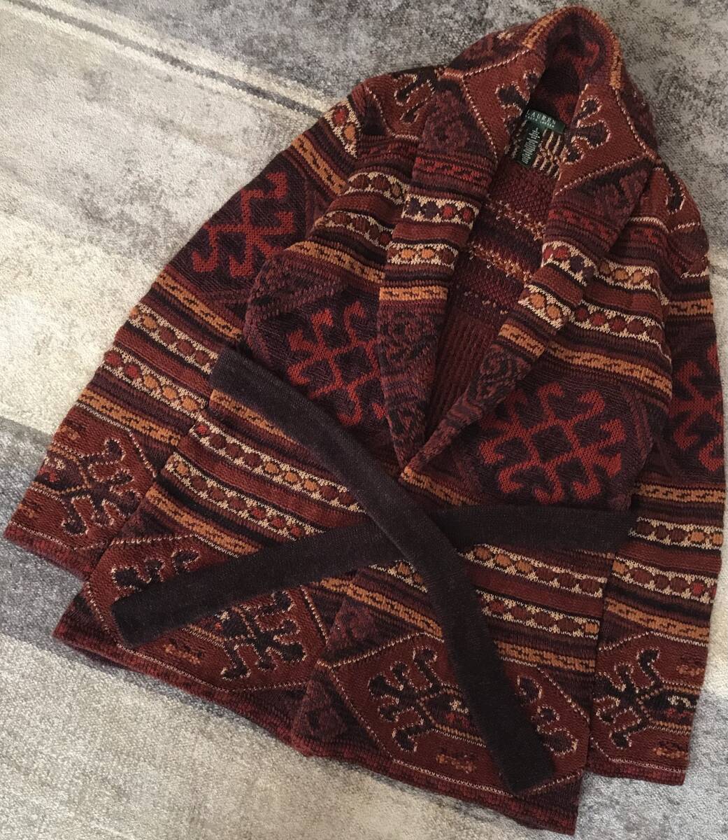 > 豪華絢爛 圧巻のペルシャ柄&ラメ 90's vintage ★ RALPH LAUREN ★ ラルフローレン ネイティブ柄 ナバホ柄 ニット ガウン カーディガン S