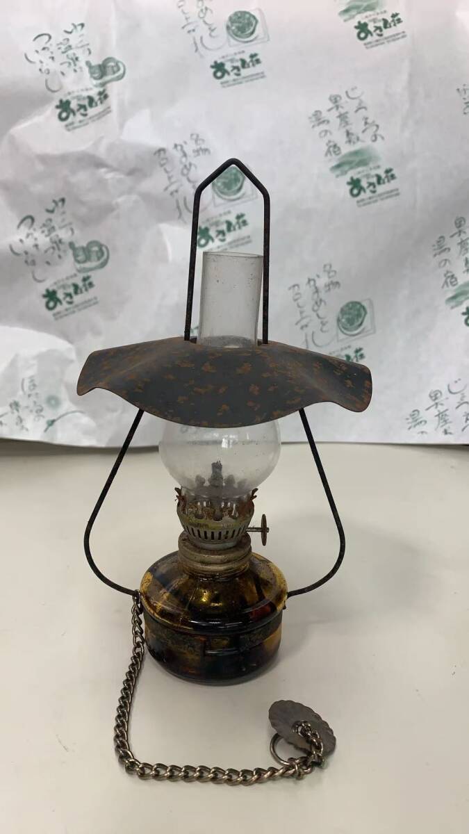 - S1-7-3→レトロ 道具 かさ付きオイルランプ ランタン 置き型・吊り下げ2way 年代物 現状品 動作未確認 中古