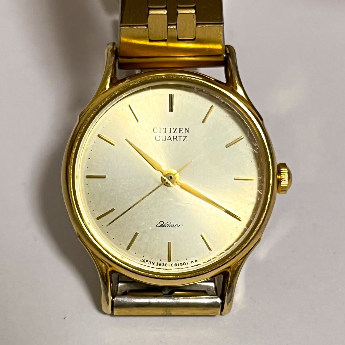 - 和851★ CITIZEN Homer シチズン ホーマー クォーツ 腕時計 ウォッチ 3針 3630-360796 7020379 ゴールド メタルバンド レディース