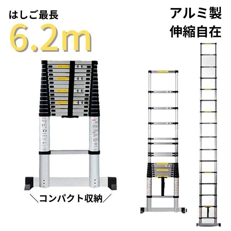 - はしご 伸縮 梯子 アルミ製 伸縮はしご 6.2m 安全ロック 滑り止め付き ハシゴ 軽量 スーパーラダー 耐荷重 150kg スライド式 大掃除 zk199