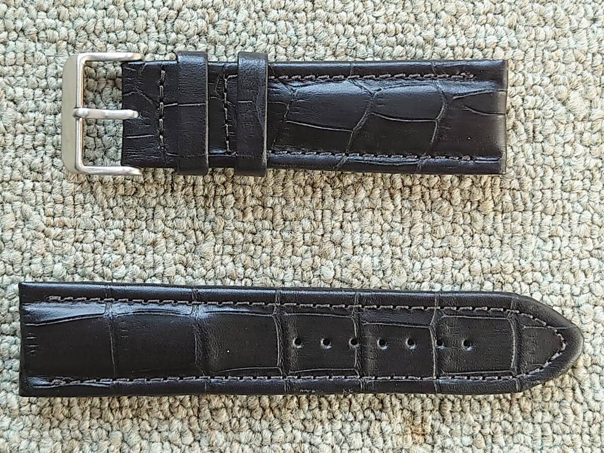 - レアな人気!!幅広で肉厚■高級ワニ調牛革型押しバンド : 抗菌防臭&撥水加工■時計本体側取付幅24mm尾錠幅22mmカラー黒色■銀色尾錠金具付き