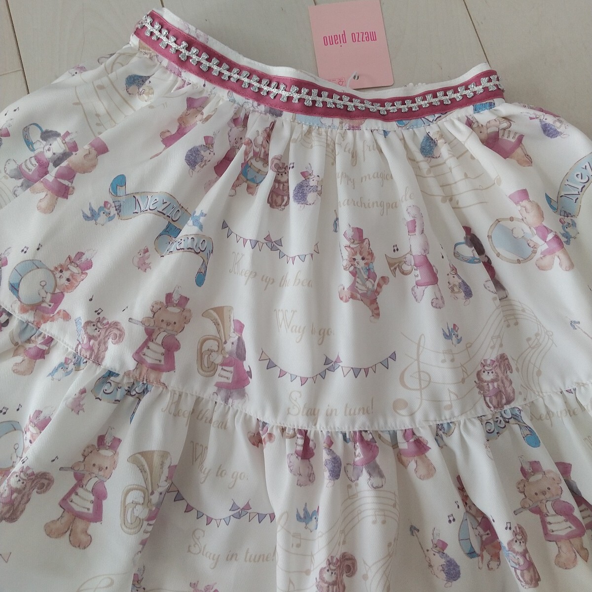 - 120 新品タグ付き未使用 メゾピアノ 鼓笛隊柄スカート 白