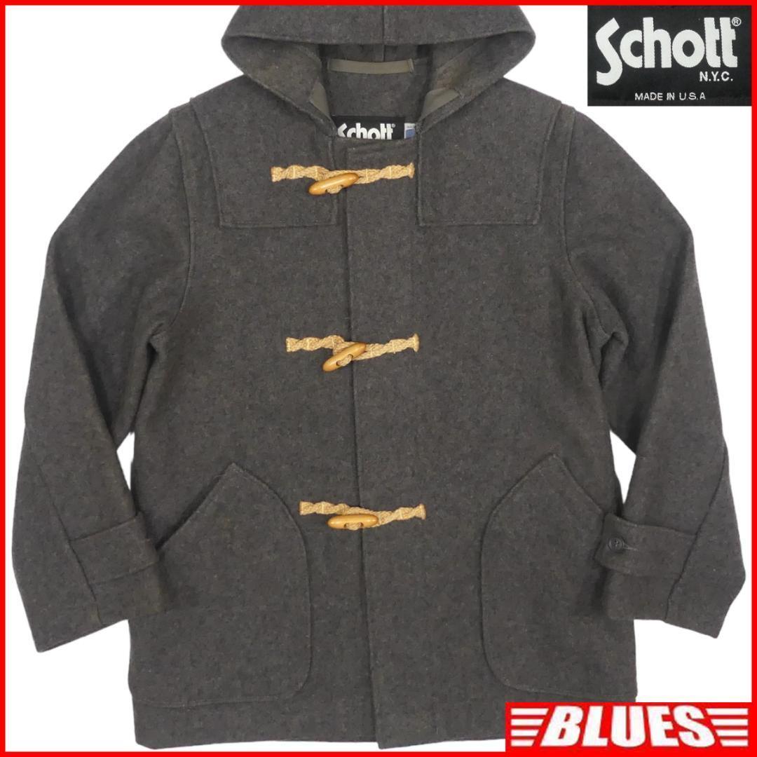 > 即決★アメリカ製 Schott★メンズS ダッフルコート Schott グレー USA製 ロングコート 通勤 ジャケット 通学 トグルボタン