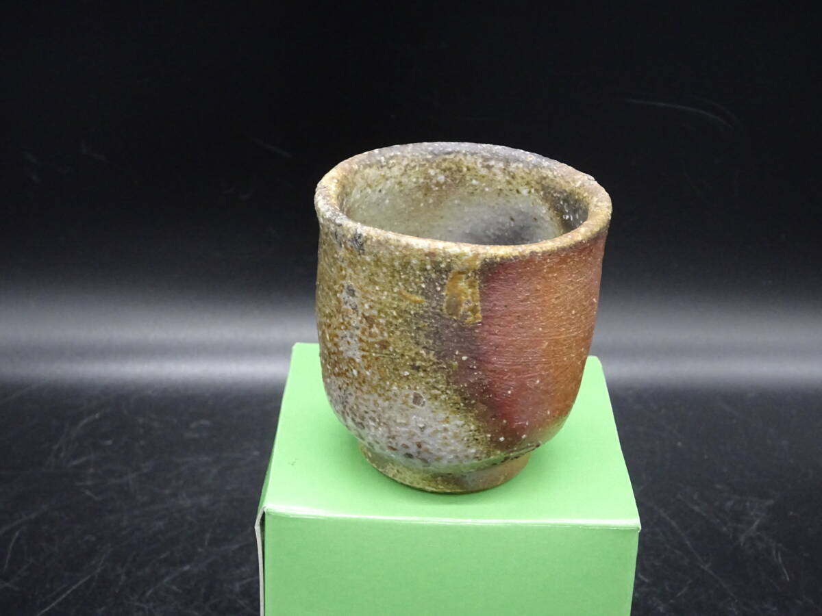 - 備前焼 人気実力作家 黒田儀男 工芸会正会員★備前窯変ぐいのみ 紙箱、陶歴付 酒器 茶碗 壺 茶道具