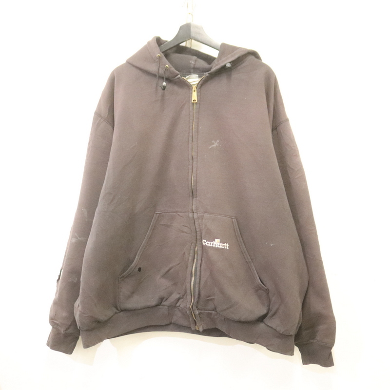 > T145 2000年代製 Carhartt カーハート ジップパーカー■00s 表記2XLサイズ ブラック フーディー フルジップ BLK ししゅう 裏地サーマル