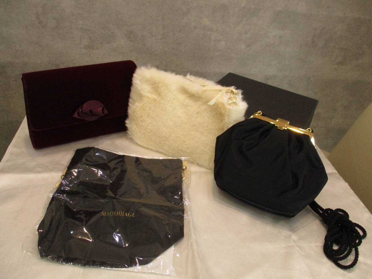 - バッグ ポーチ4点セット バック ポーチ 巾着袋 パーティー 正装 エレガント ローズ ブラック ホワイト コンパクト 保管品 おまとめ4点